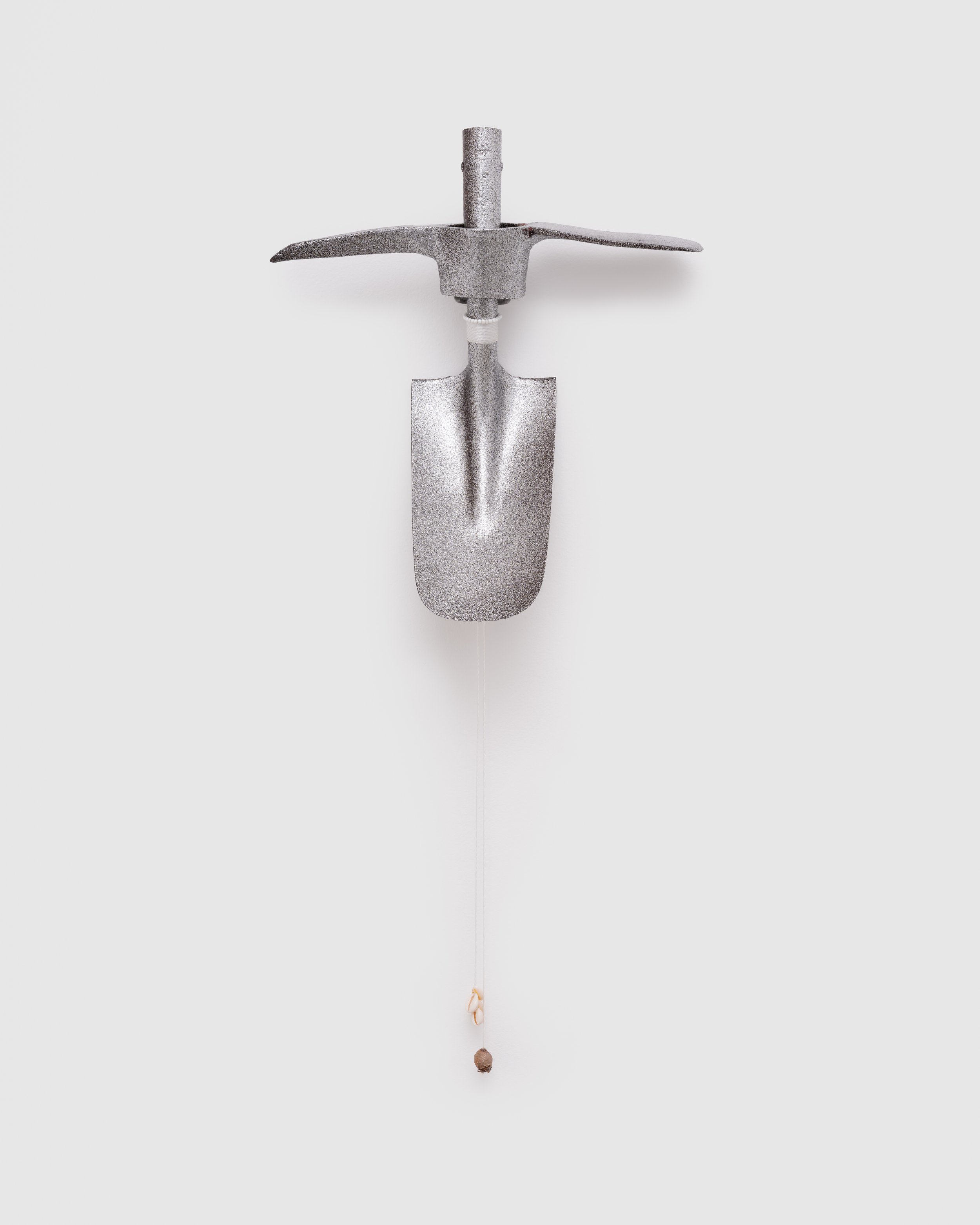 Charlie James Gallery is pleased to present noé olivas: la jornada, a multimedia exhibition that explores the intersections between labor and liberation through collective spiritual work. The exhibition centers the implements and aesthetics of the toolshed, bringing together shears, clippers, buckets, and shovels in tender constructions that bridge the gap between this world and the next. olivas calls upon ancestors by transforming materials passed down through his family into references from the Ifá tradition and ritual. With this body of work, olivas hopes to create space for the kind of spiritual and communal labor needed in this divisive moment.