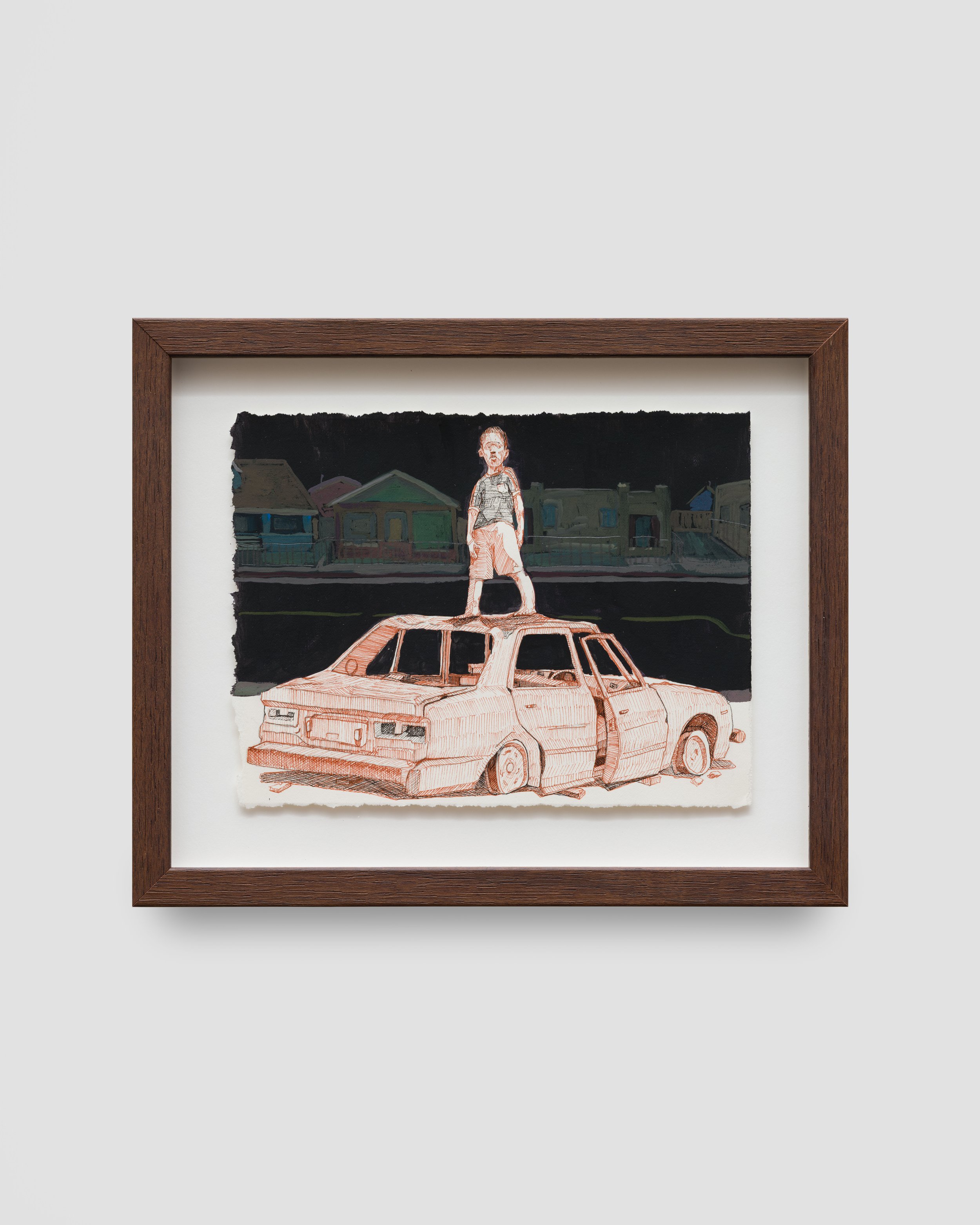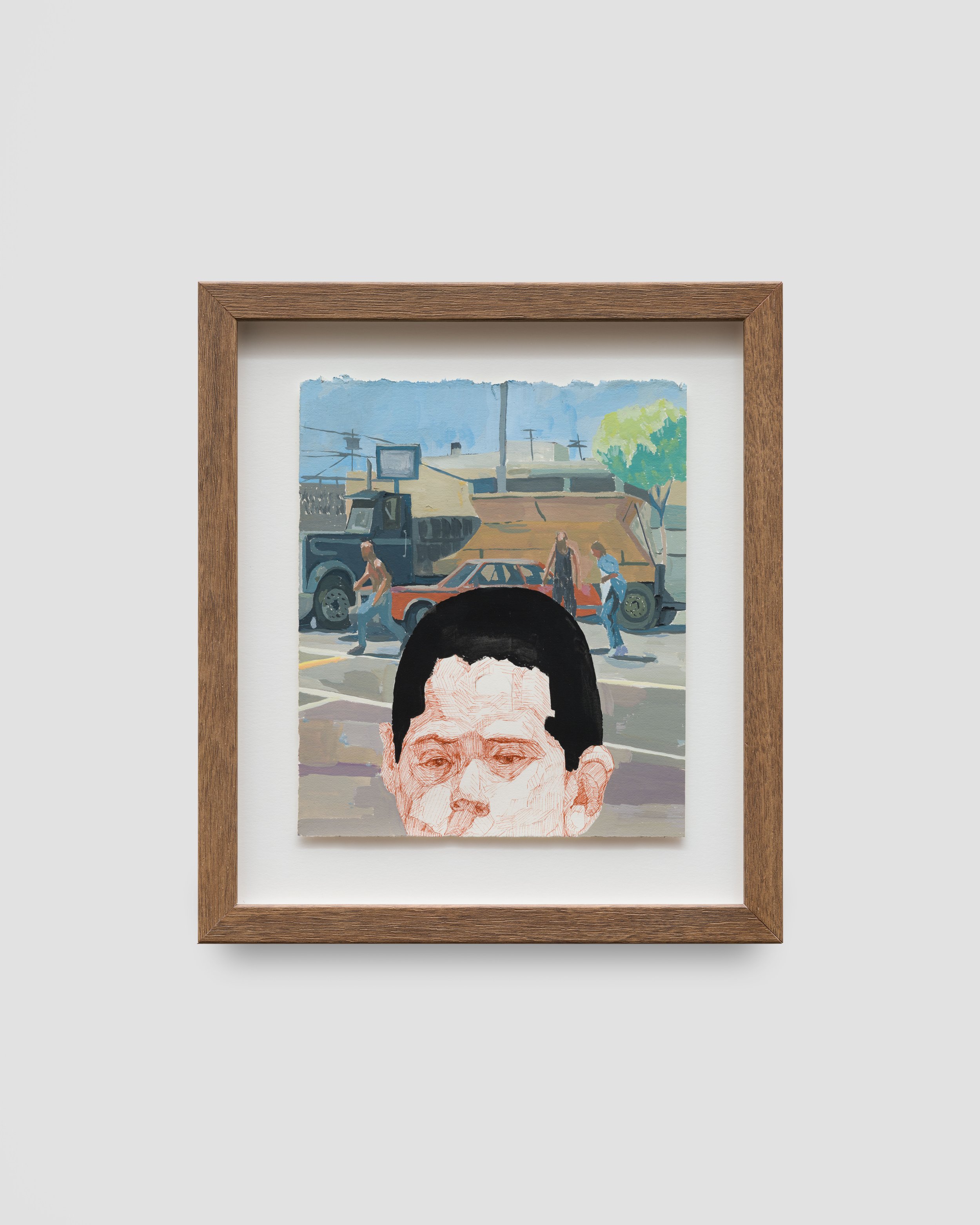 Elmer Guevara (b.1990) was born and raised in Los Angeles, CA. Guevara’s upbringing took place in the South Central neighborhood. In the 1980s, his parents fled a war-torn El Salvador finding refuge in the City of Angels. Along with South Central’s vibrant energy and the culture his parents brought with them, he became inspired to reflect on his upbringing and the hybridity of cultures along with the struggles his parents experienced with leaving and adapting to city dwelling. He often constructs narratives by sampling family photos from his youth, reframing compositions that form dialogue about identity and concepts of inter-generational trauma. Furthermore, he depicts observations from his own and neighboring immigrant families and surrounding environment. Reflecting on his adolescence and into his teenage years, he met with friends, commuting throughout the city on public transit and becoming obsessed with exploring the city’s crevices. This obsession later opened an appreciation for painting and an education in the arts.